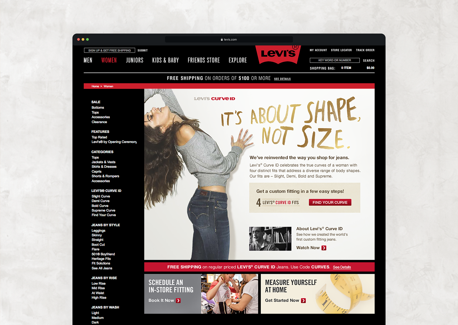 Levi’s Curve ID is a women’s denim line designed to fit shape, not size, using a digital Fit Finder quiz and in-store measurements to help shoppers find their perfect, personalized fit.