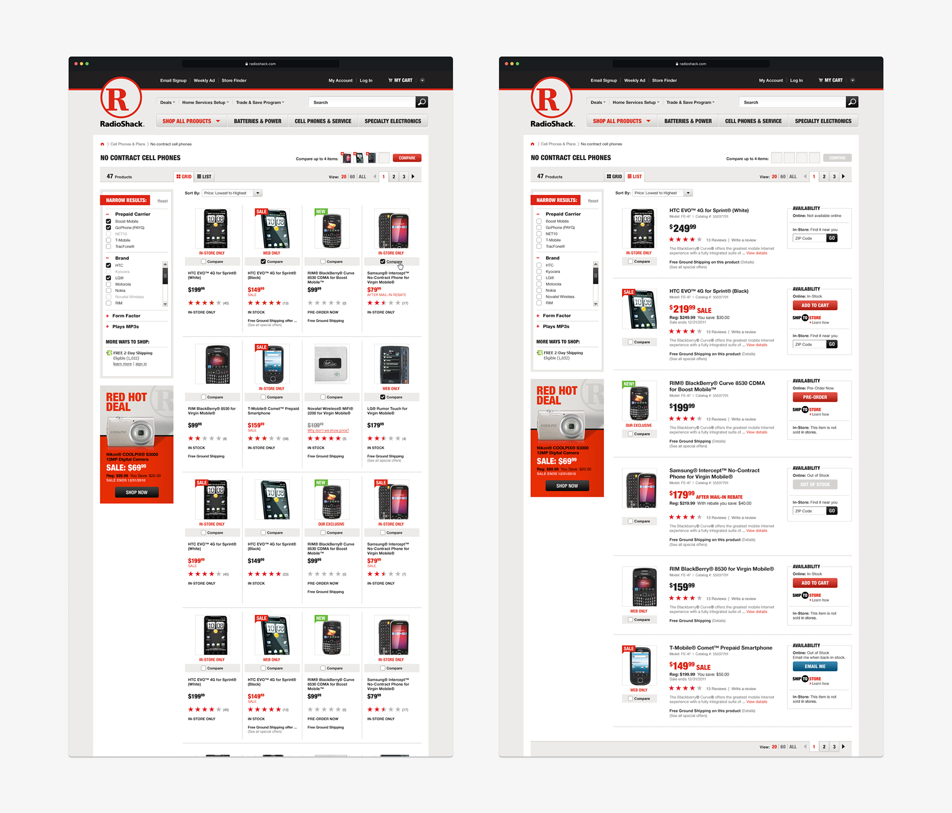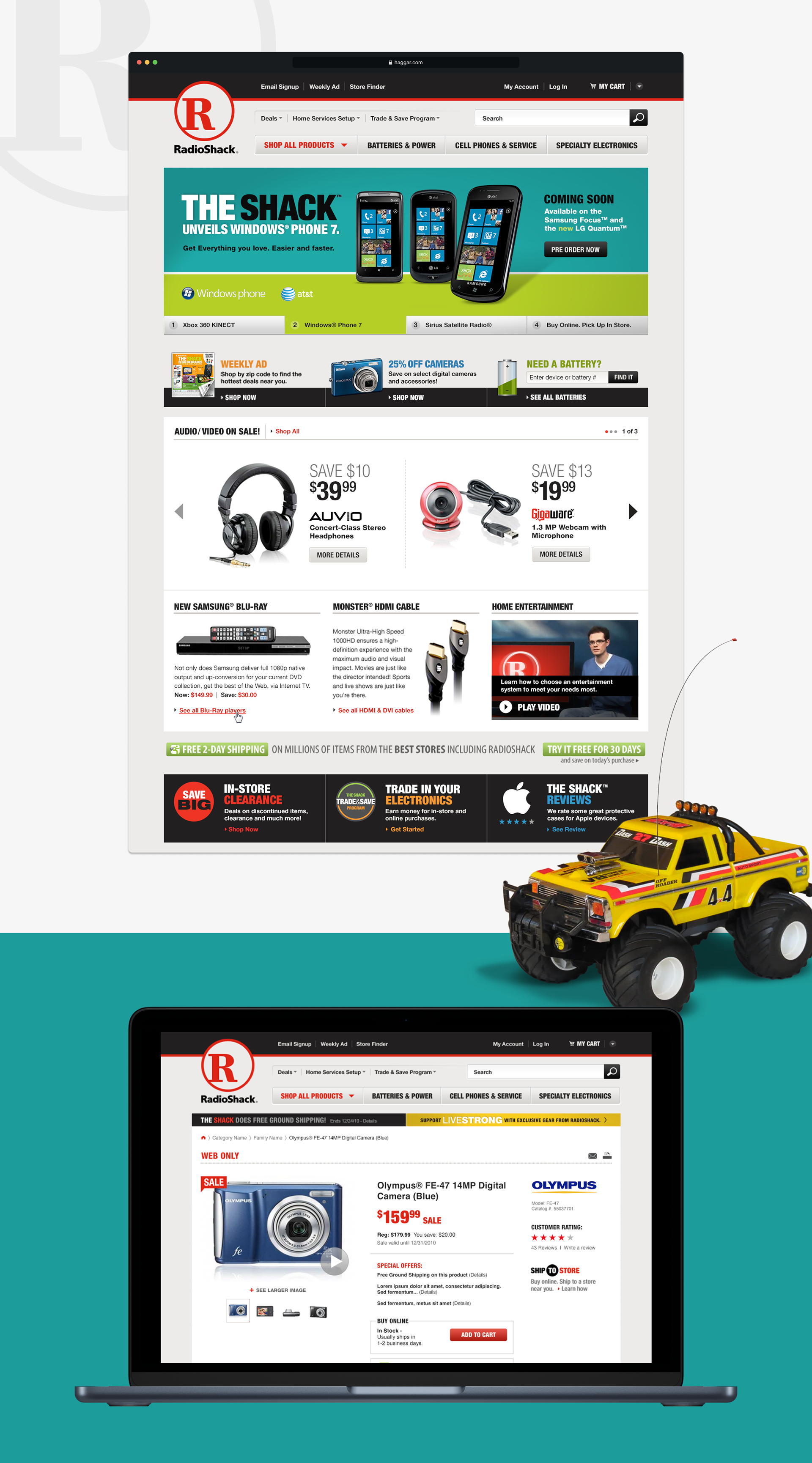 Radio Shack’s legacy as a tech pioneer inspired a redesign that modernized its online shopping experience while honoring its iconic history. I focused on UX and visual design, creating a clean, intuitive interface that makes browsing effortless and reinforces the brand’s credibility. The result is a digital storefront that feels fresh and familiar — connecting Radio Shack’s heritage to today’s connected shoppers.